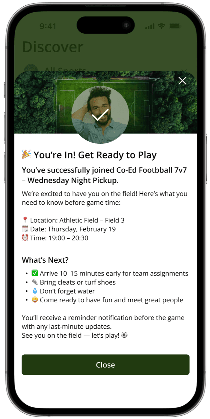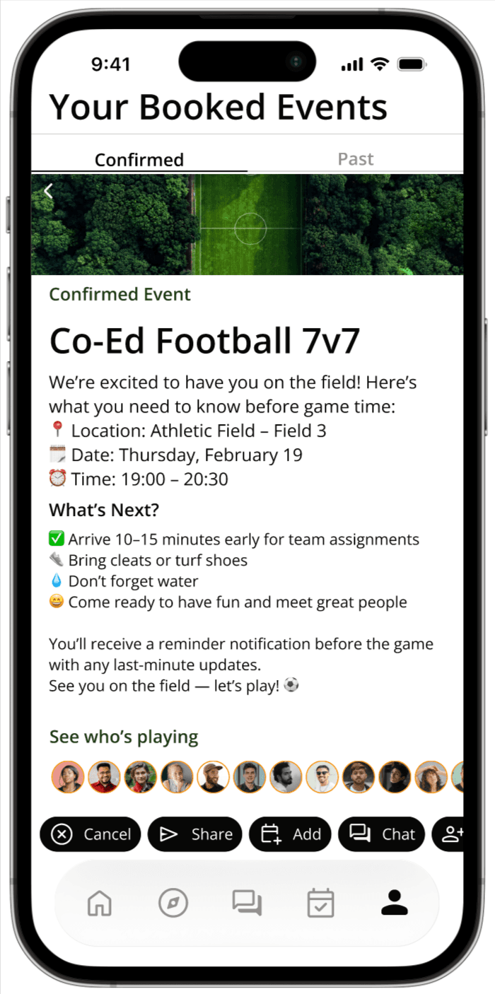 Where friction showed up was mainly around clarity. Certain terms like “drop-in,” “free agent,” and definitely “upcoming” created confusion. Users also wanted more transparency before committing — things like pricing, cancellation policies, confirmation status, and who exactly would be playing.