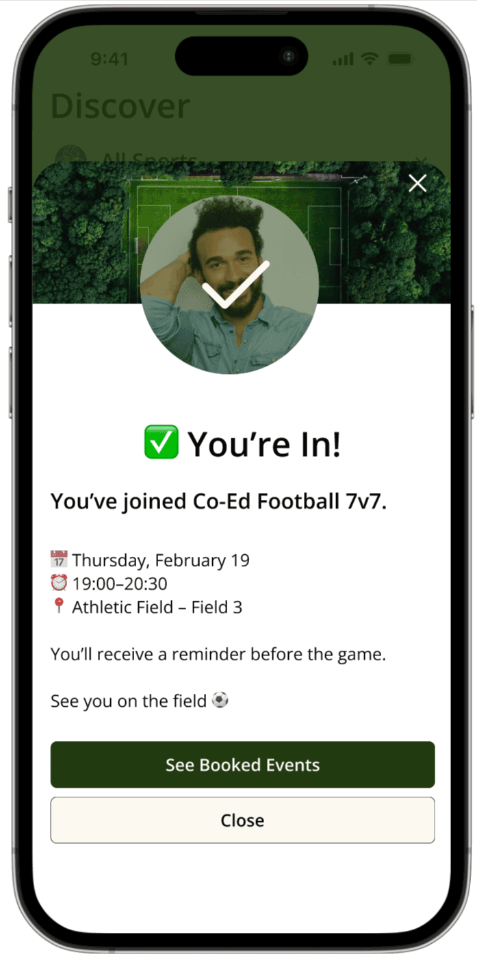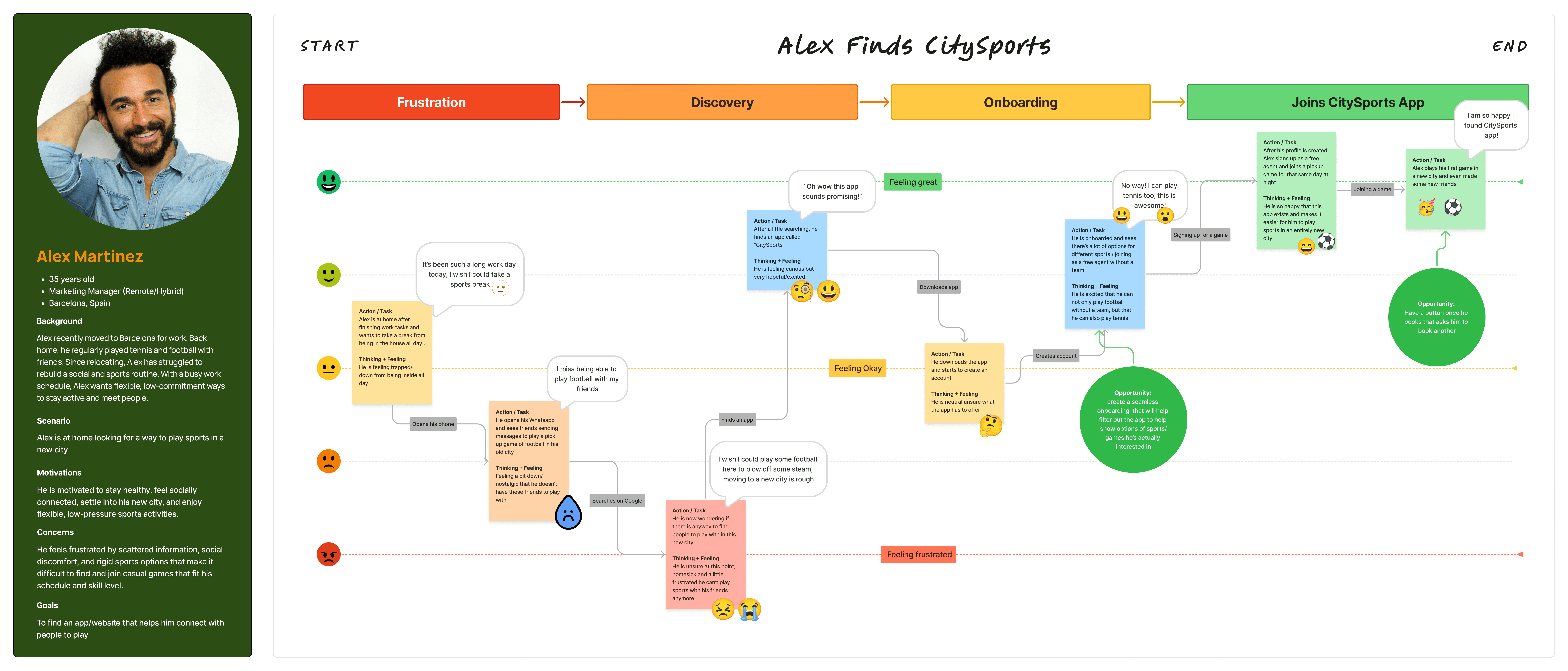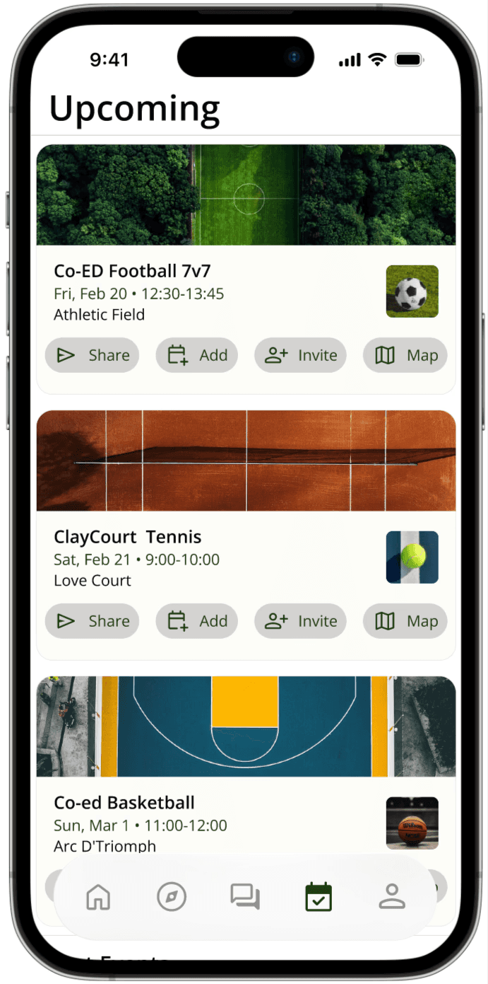 Through user surveys, conversations with others and usability testing, it became clear that this challenge is very real — especially for adults who no longer have built-in social environments like school or university. The added layer of moving to a new city makes it even harder to find people to play sports with. That insight strongly validated the core concept behind CitySports.