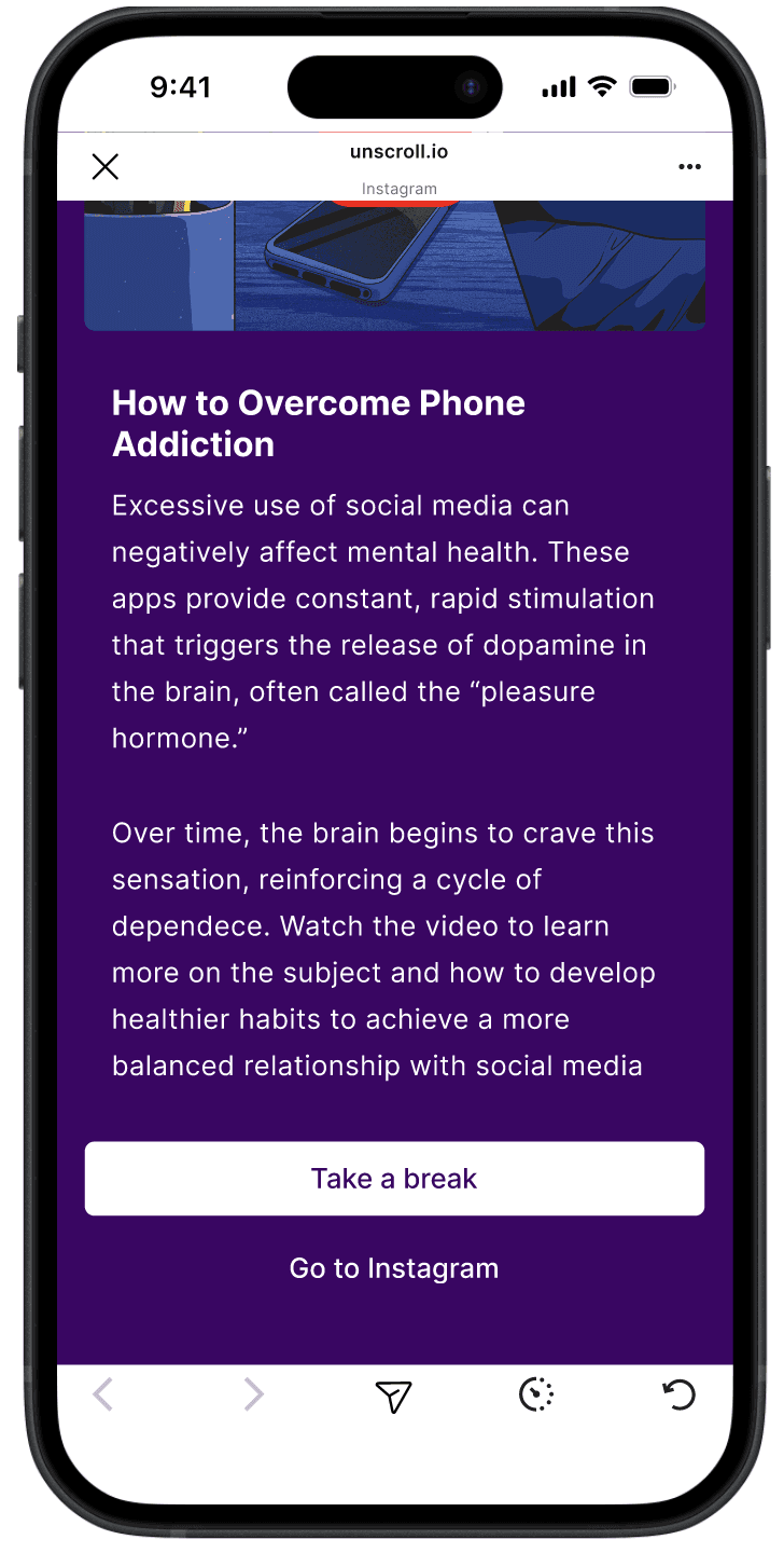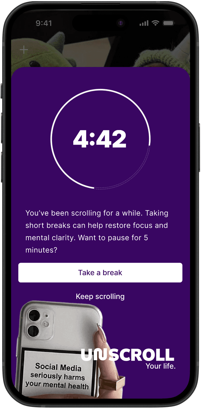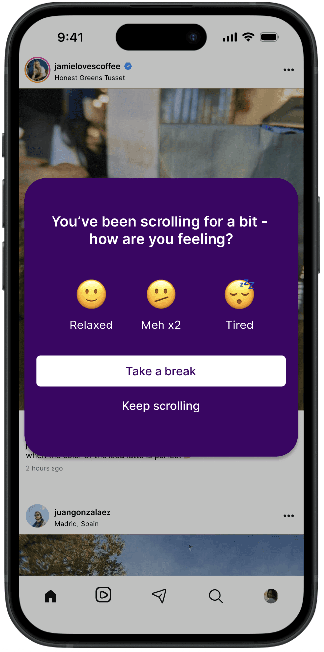 However, as we observed their behavior more closely, another pattern quickly emerged. While users liked the reminder, many admitted that if they really wanted to keep scrolling, they would simply ignore it. The warning worked more as a moment of awareness than a real stopping point. Users might pause, close the app briefly, and then return shortly after.